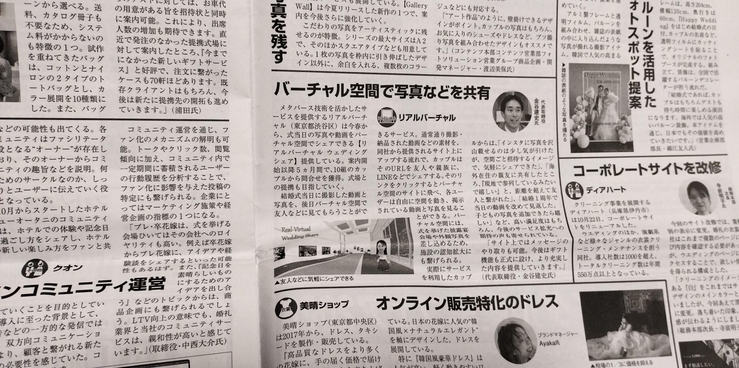 ブライダル産業新聞12月11日号に当社の「結婚式用の動画と写真シェア」の取り組みが紹介されました。
